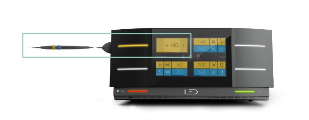 La configuración inicial de SURTRON TOUCH HP y la modificación de la configuración durante una operación quirúrgica se seleccionan fácilmente a través de la gran pantalla táctil.